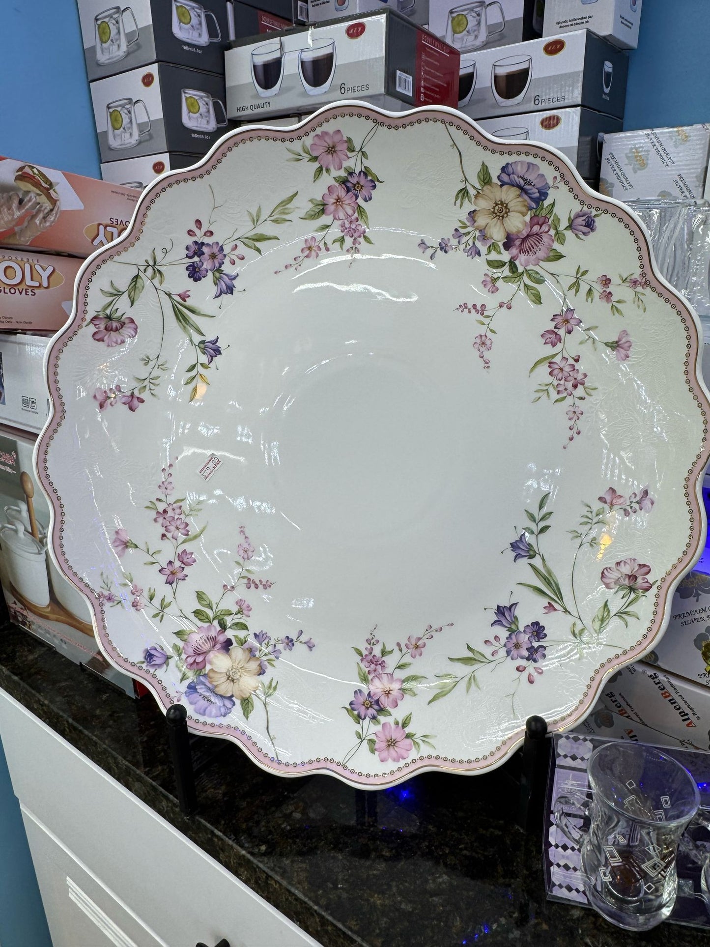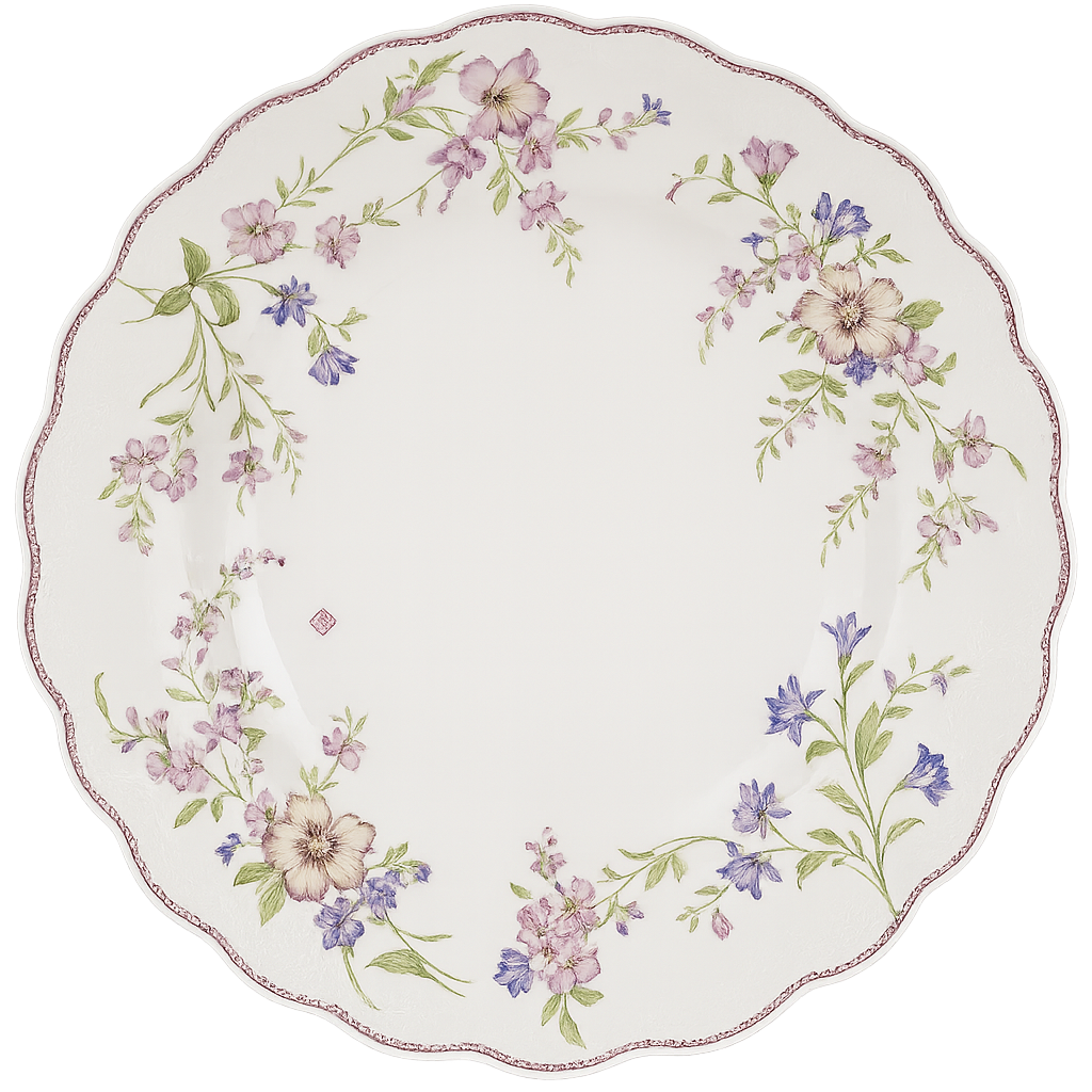 Elegant Floral Porcelain Serving Plate – Scalloped Edge Design